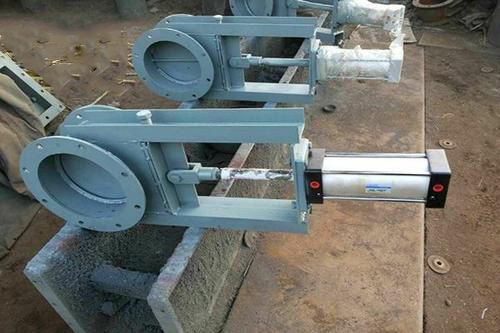 e、氣動(dòng)插板閥由啟閉氣缸插入殼體內(nèi),拉動(dòng)或推動(dòng)插板開啟或關(guān)閉。